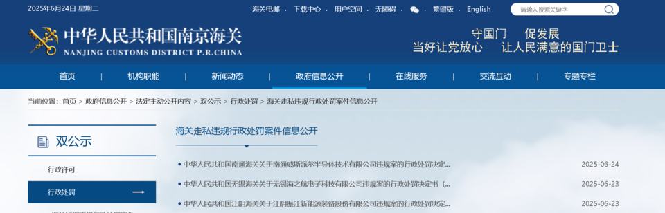 近日,中华人民共和国江阴海关公布一份行政处罚决定书(澄关缉违字〔2025〕8号),对江苏振江新能源装备股份有限公司(以下简称“振江公司”)在进出口活动中的多项申报不实行为依法作出罚款人民币18000元的行政处罚决定。