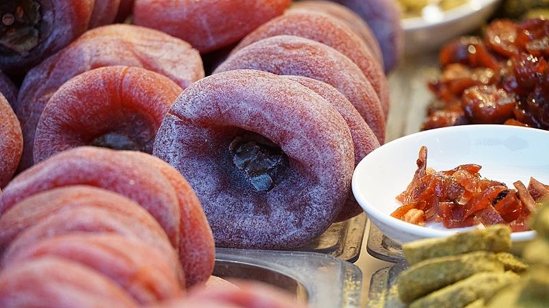 由于含糖量高、水分少,柿饼可以储存很长时间。除了直接吃,也能做成甜品,最出名的是老北京小吃“果子干儿”。外地人还以为是干果大集合,其实是将柿饼、杏干撕成块,用凉水浸泡到汤水黏稠入味,再放几片新鲜藕片做成的水果汤。