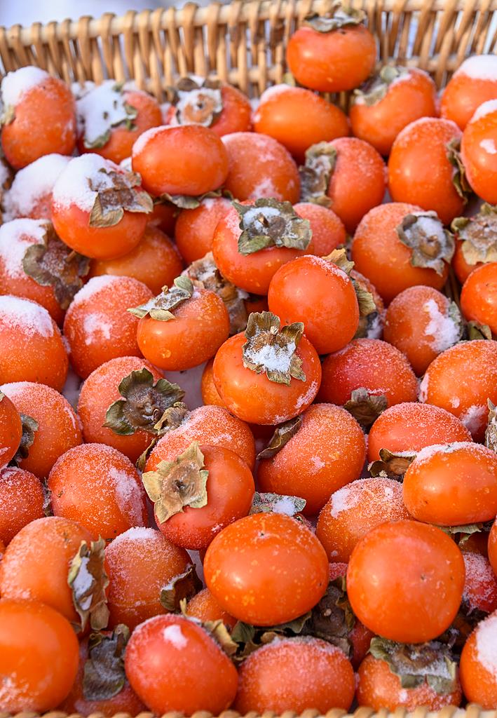 在东北、华北,还有一个利用冬季室外天然“冰窖”来帮助柿子脱涩的办法,那就是把它做成冻柿子。在冷冻的过程中,柿子果肉细胞壁被破坏,产生大量的水溶性果胶,不仅促进了单宁转变,解冻后的口感更绵密细腻。