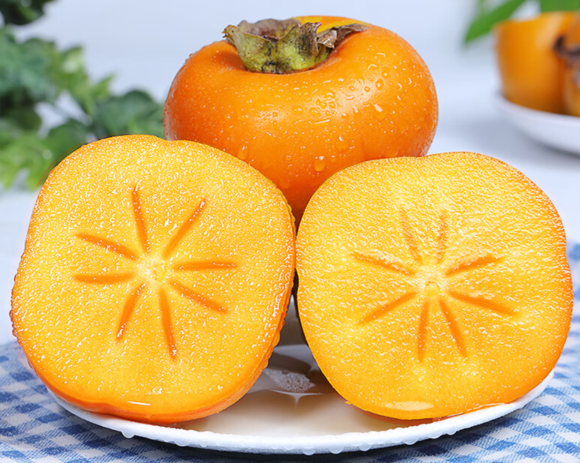 甜柿可以在树上生长时自动脱涩,熟了就能直接吃。甜柿大多果肉偏脆,切成片也不会流淌出太多果汁。而涩柿需要在采摘后人工脱涩处理才能吃,根据处理方式不同,处理后的质地可以偏脆也可以偏软。
