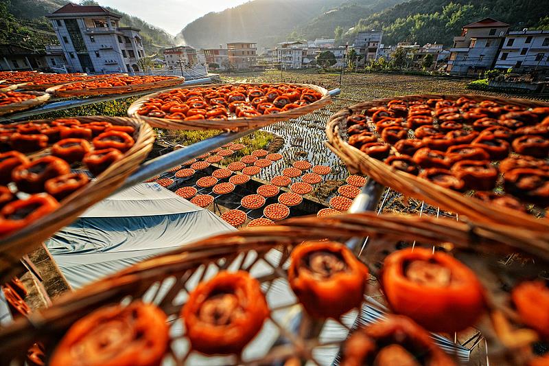 福建、广西等地则将柿子铺在竹匾里晾晒。