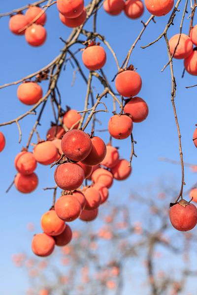 根据柿果在树上成熟后可溶性单宁的含量,可以将柿子分为“涩柿”和“甜柿”两大类,进一步细分的话,还可以分为涩柿、不完全涩柿、甜柿、不完全甜柿。